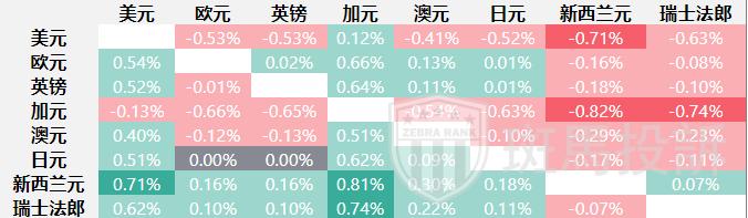 下表显示了本周美元(USD)对上市主要货币的百分比变化。美元兑新西兰元的汇率最弱。