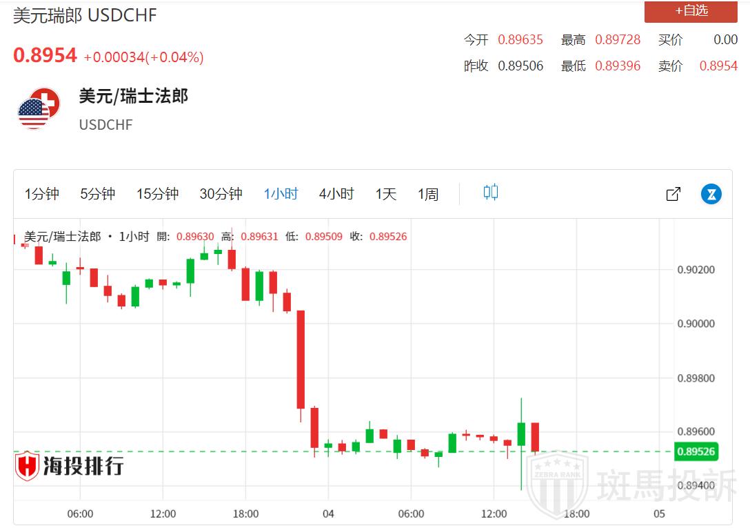 周二欧洲早盘,美元/瑞郎在0.8970附近反弹。