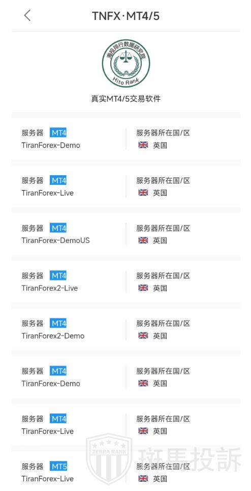 TNFX平台服务器有9台,都在英国。