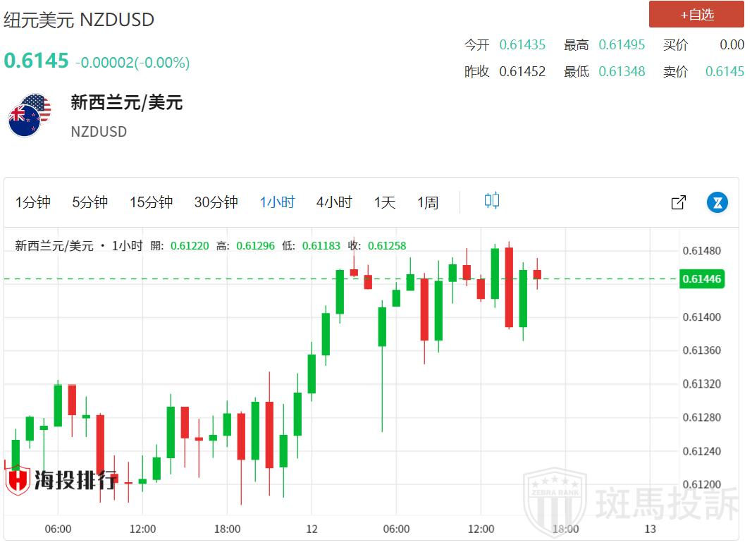 纽元/美元走低,原因是在美联储(FED)决议和美国5月份通胀数据公布之前,交易商青睐美元。周三欧洲时段,纽元/美元走低至0.6140附近。