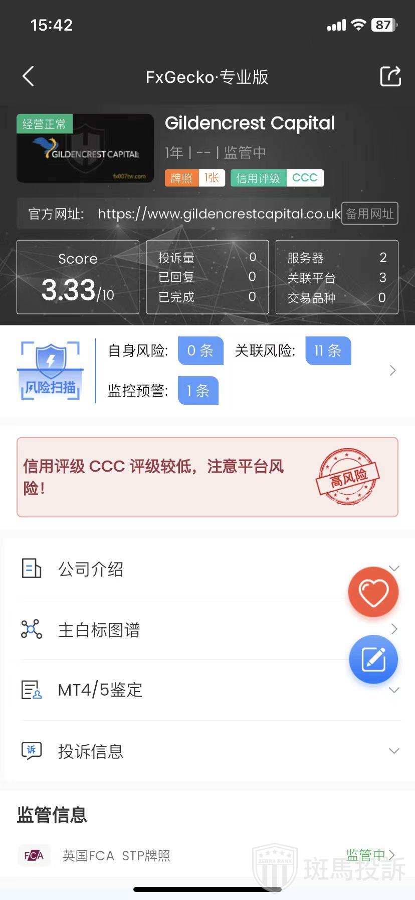 Gildencrest Capital,FxGecko评分3.33分,信用评级较低,建议投资者远离!