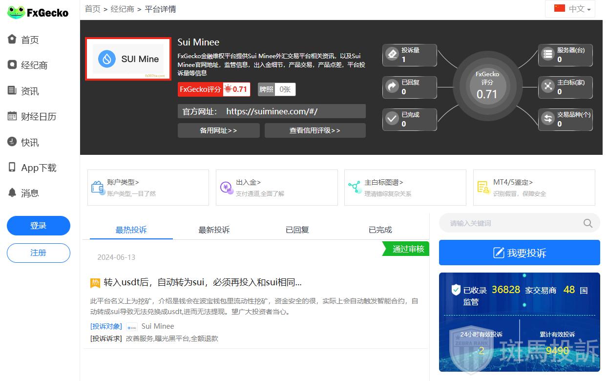根据FxGecko的评分,Sui Minee仅得0.71/10,属于极高风险的平台。这一评分反映了该平台的安全性和可信度极低。
