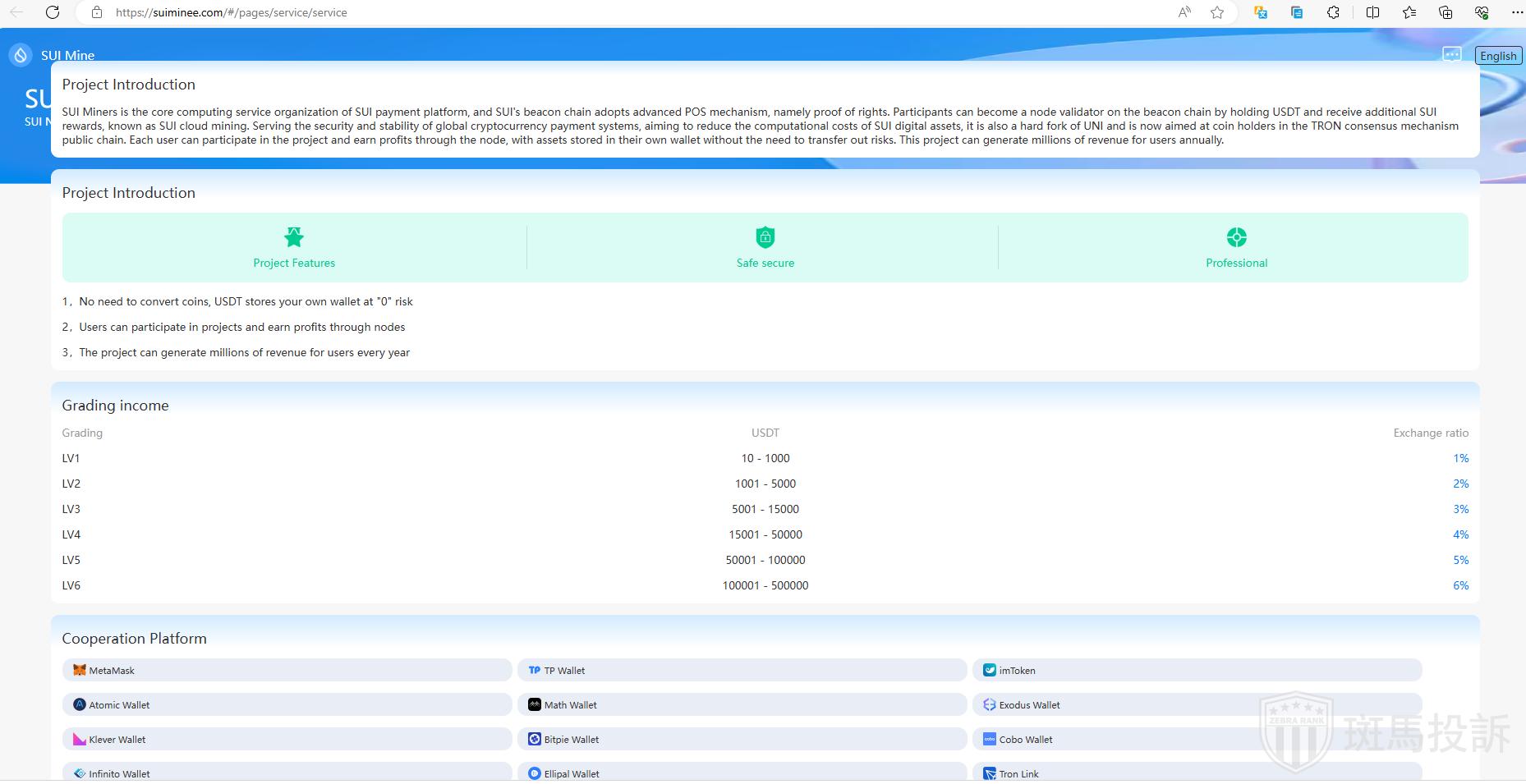 Sui Minee 声称是SUI支付平台的核心计算服务组织,采用先进的POS(权益证明)机制。参与者通过持有USDT,可以成为信标链上的节点验证者,并获得额外的SUI奖励,称为SUI云挖矿。平台宣称为全球加密货币支付系统的安全与稳定服务,旨在降低SUI数字资产的计算成本。Sui Minee还自称是UNI的硬分叉,目前面向TRON共识机制公链的持币用户开放。每个用户可以通过节点参与项目并获利,资产储存在自己的钱包中,无需转移资金,声称年收益可达数百万美元。