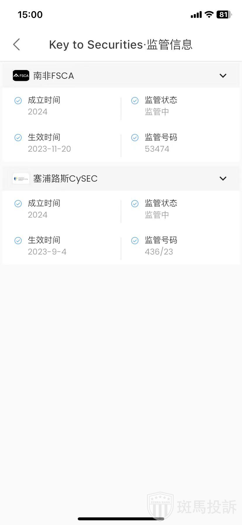 Key to Securities,在FxGecko显示2家监管信息。持有的南非FSCA 金融服务牌照、塞浦路斯CySEC STP牌照监管状态为监管中。投资者资金安全无保障!