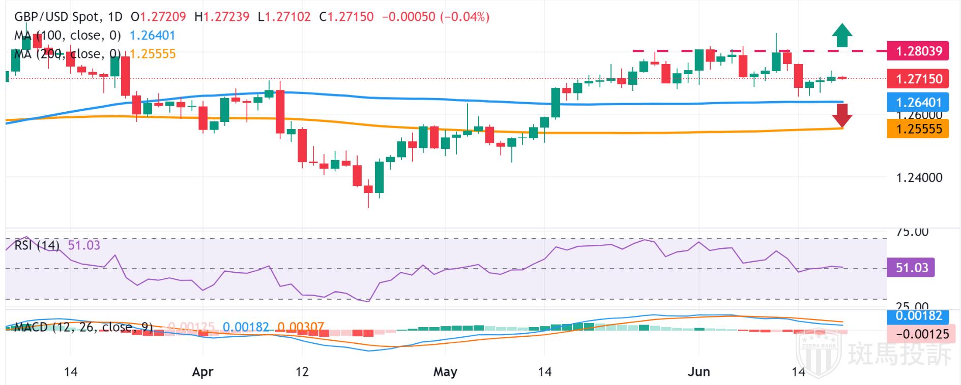 周四亚洲时段,英镑/美元走势略偏空,进一步远离前一天触及的一周高点 1.2740 附近。不过,现货价格仍守在1.2700关口上方,交易商在等待英国央行(BOE)关键的货币政策决议,再进行新的方向性押注。