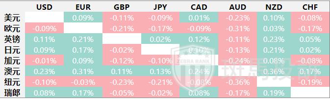 下表显示了英镑(GBP)对所列主要货币今日的变动百分比。[货币名称]对[货币名称]最强。