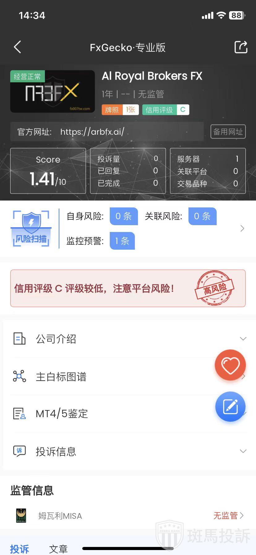 Al Royal Brokers,FxGecko评分1.41分,信用评级较低,建议投资者远离!