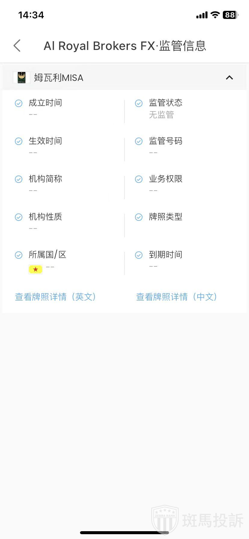 Al Royal Brokers,在FxGecko显示1家监管信息。持有的姆瓦利MISA监管状态为无监管。