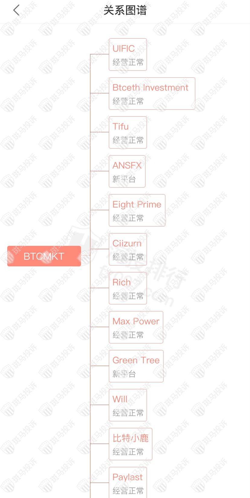 主白标关系显示,BTCMKT平台和45家平台是一家公司,从他们的服务器地址,网站的模板来看,都可以看出来相似的地方。其中MKNDY、Gotlonfx经营异常。