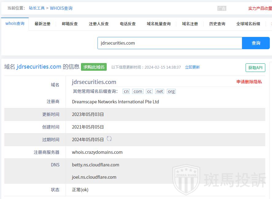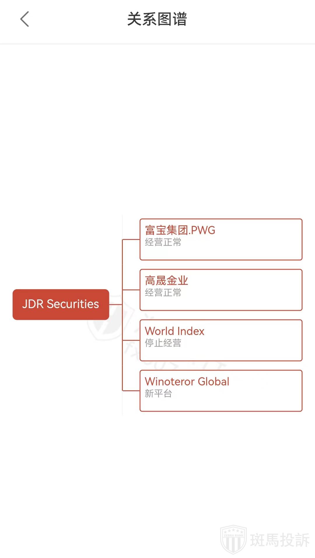主白标关系显示,JDR Securities平台有4家相关联的平台,其中2家经营正常,1家停止经营,1家新平台。