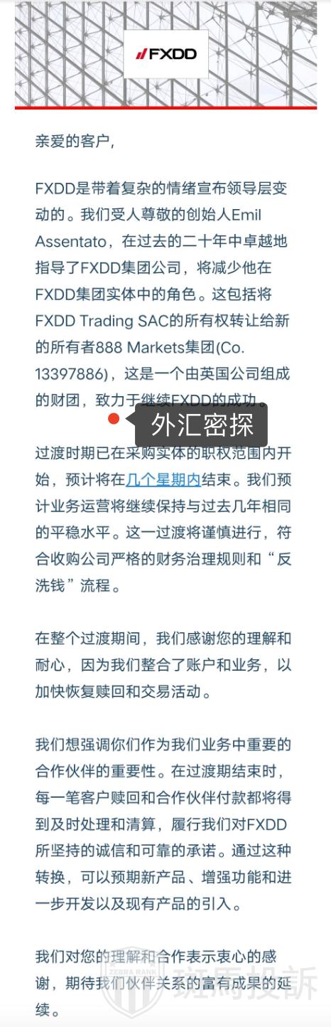FXDD官方邮件:领导层变动及过渡期解释