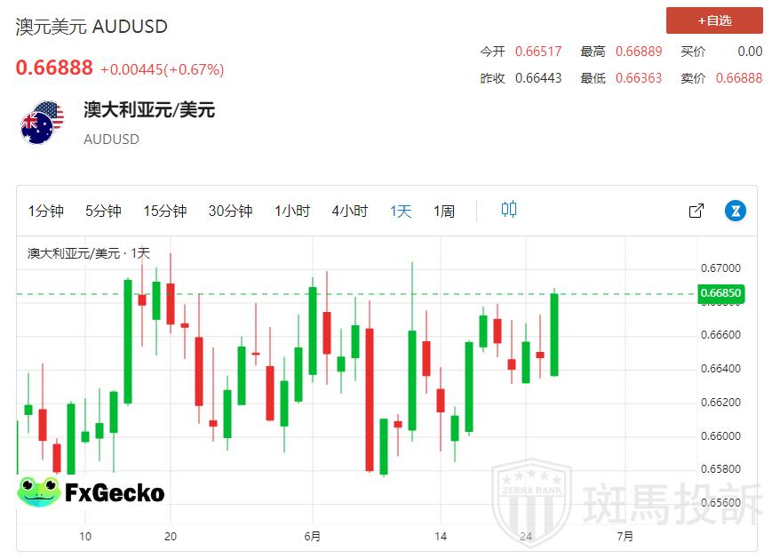 继 5 月澳大利亚消费者价格指数年率强于预期后,澳元收复失地。持续的高水平通胀是澳大利亚储备银行(RBA)可能降息的拦路虎,有可能支撑澳元并提振澳元/美元。