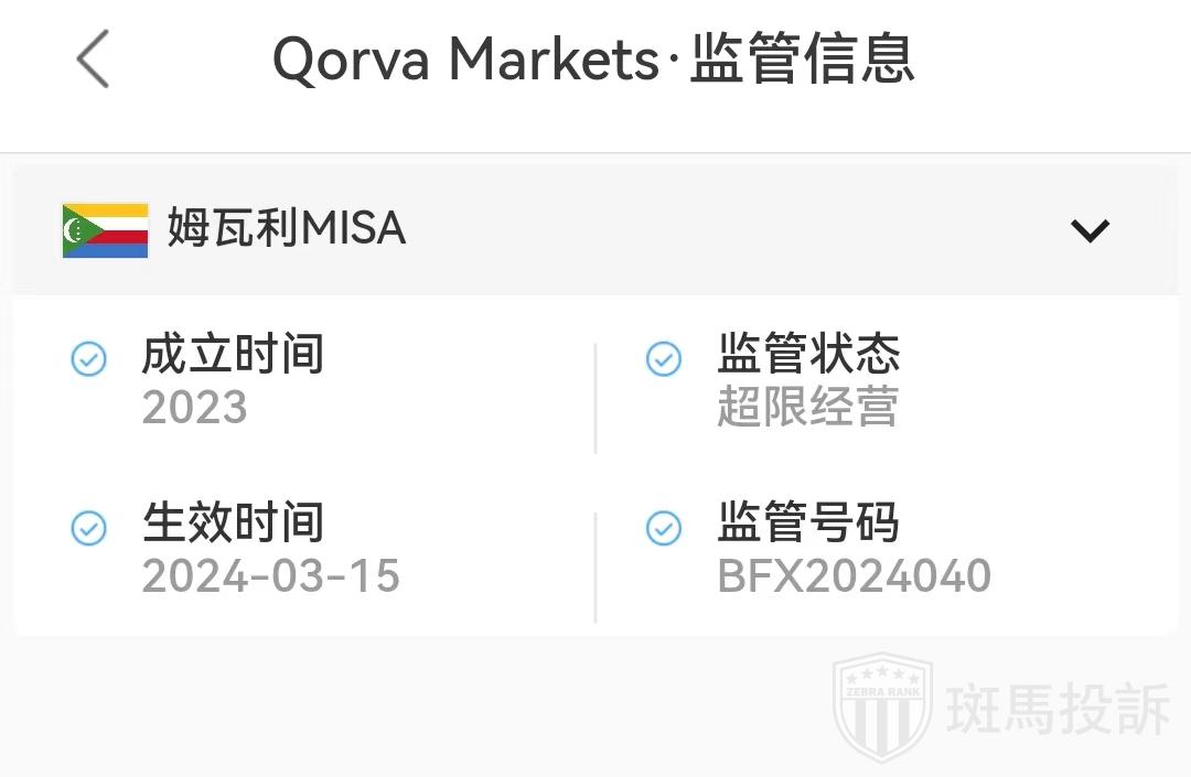 Qorva Markets平台姆瓦利MISA监管,取得金融服务牌照,监管号码:BFX2024040,属于超限经营范畴。