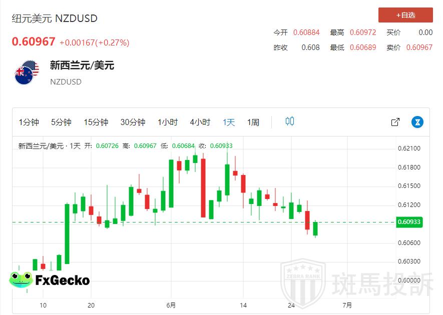 美元小幅下跌,纽元/美元在0.6070-0.6065区域吸引部分多头。