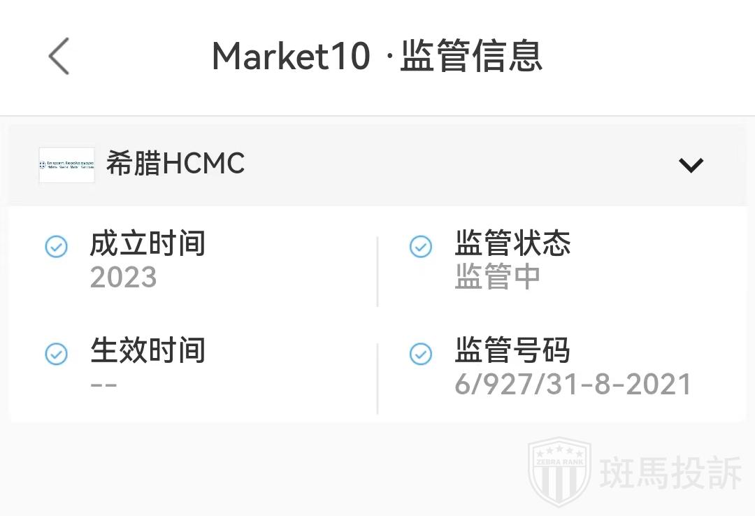 Market10平台受希腊HCMC监管,取得外汇牌照,监管号码6/927/31-8-2021。