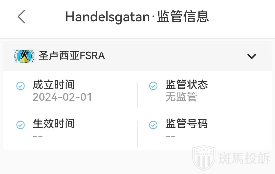 据查询,圣卢西亚FSRA指出,Handelsgatan平台未在本委员会的相应登记处注册,因此未获提供投资服务或从事FSRA监管范围内的其他活动的授权。望投资者警惕。