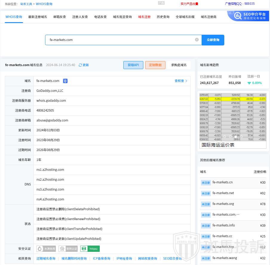 这家平台叫FE Market,成立于2023年,全球活跃指数6593名,目前没有监管,没有外汇牌照,不能做外汇保证金交易,风险扫描显示1条风险,投资者资金安全无保障。