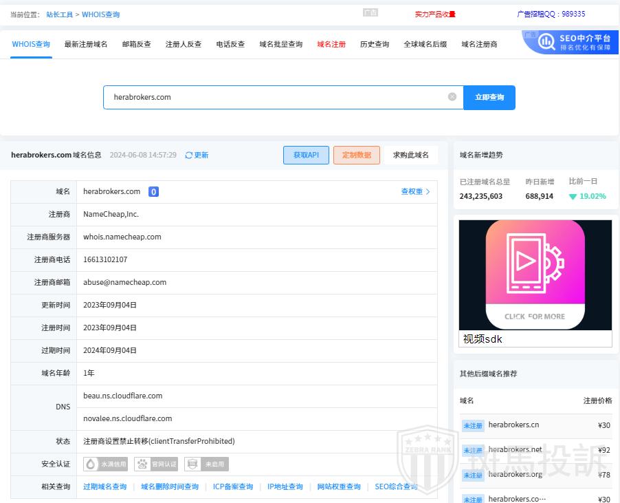 这家平台叫Hera Brokers,成立于2023年,全球活跃指数1633名,目前受圣文森特FSA监管,但是没有外汇牌照,不能做外汇保证金交易,风险扫描显示1条风险,投资者资金安全无保障。