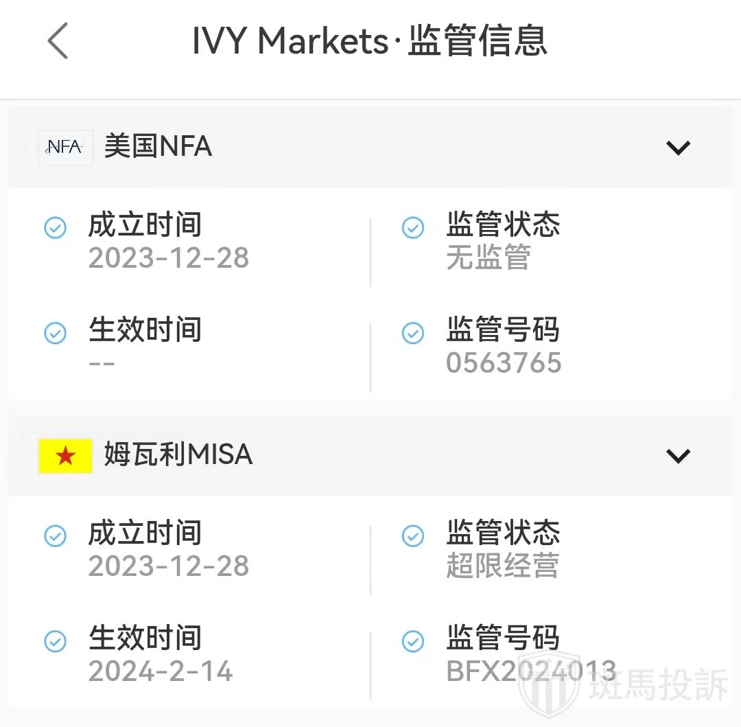 这家平台叫IVY Markets,成立于2023年,全球活跃指数1479名,目前有姆瓦利MISA监管,但是没有外汇牌照,不能做外汇保证金交易,风险扫描显示2条风险,投资者资金安全无保障。