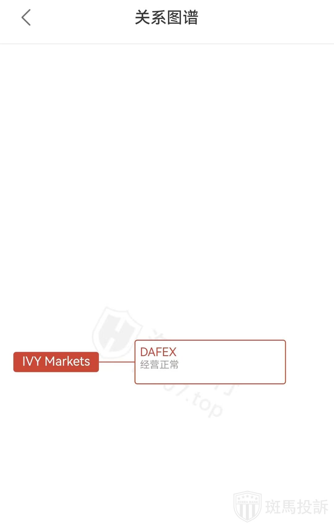 主白标关系显示,IVY Markets平台有1家相关联的平台DAFEX,目前经营正常。