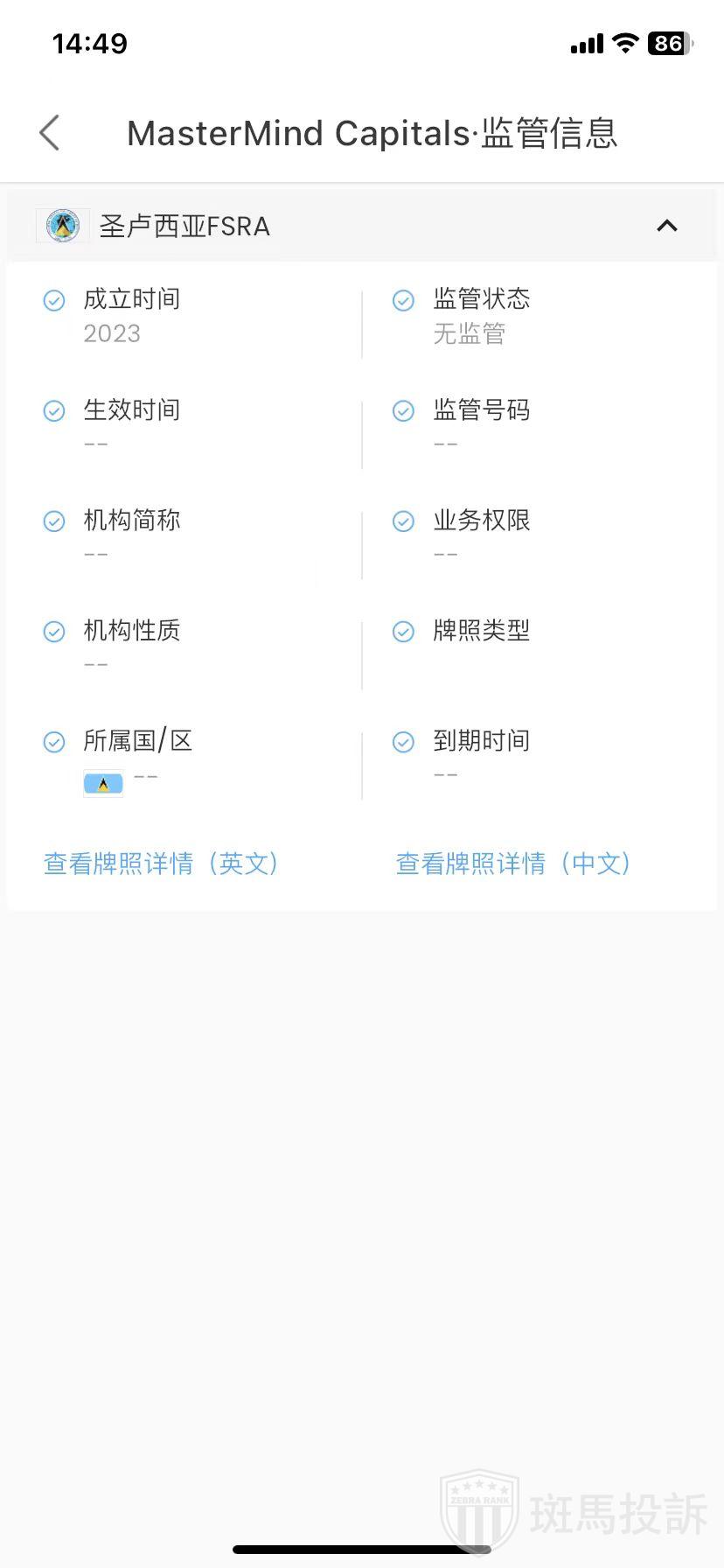 MasterMind Capitals,在FxGecko显示1家监管信息。持有的圣卢西亚FSRA监管状态为无监管。投资者资金安全无保障!