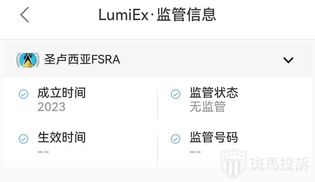 据查询,圣卢西亚FSRA指出,LumiEx平台未在本委员会的相应登记处注册,因此未获提供投资服务或从事FSRA监管范围内的其他活动的授权。望投资者警惕。