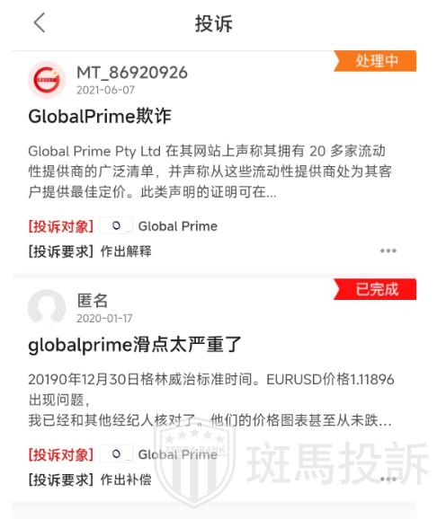 引起Global Prime平台被投诉有几种可能: