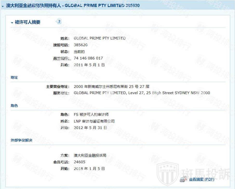 在监管牌照方面,Global Prime受到澳大利亚证券投资委员会(ASIC)的监管,取得了MM做市商牌照。具体信息如下: