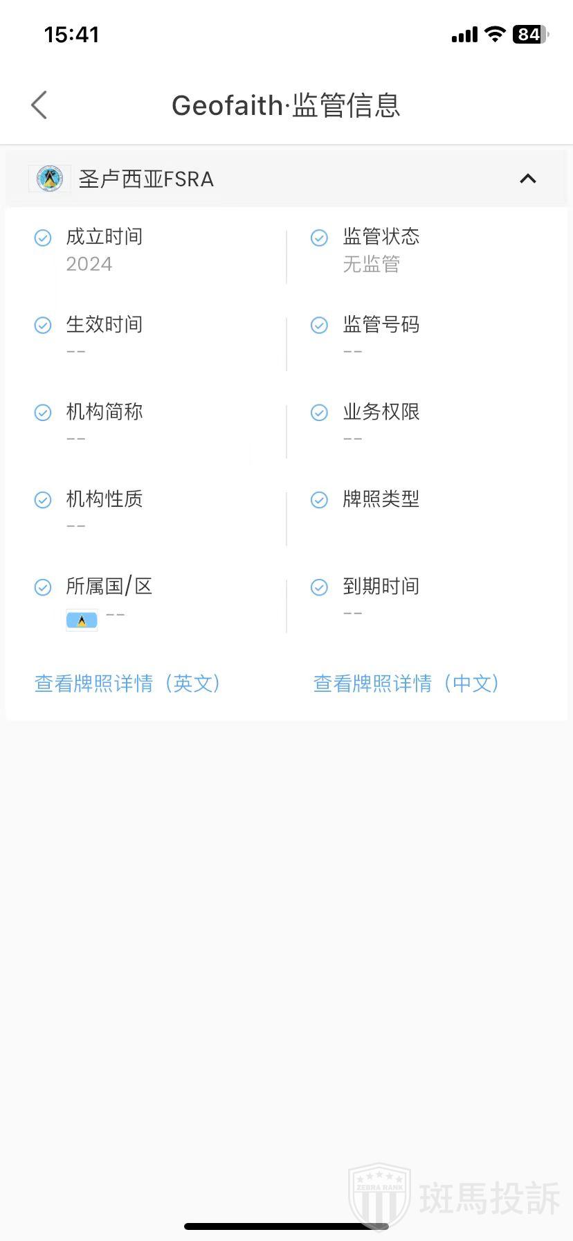 Geofaith,在FxGecko显示1家监管信息。持有的圣卢西亚FSRA监管状态为无监管。投资者资金安全无保障!