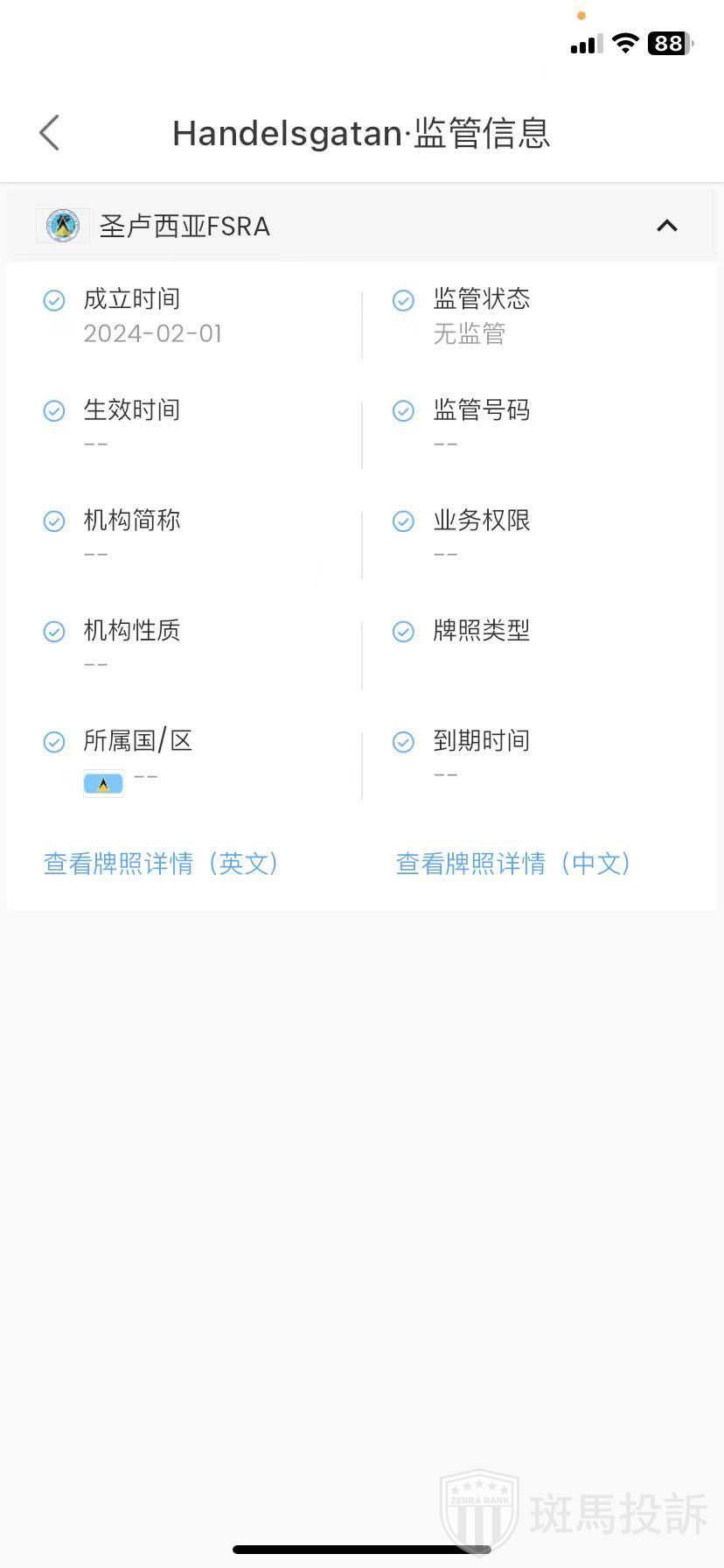 Handelsgatan,在FxGecko显示1家监管信息。持有的圣卢西亚FSRA监管状态为无监管。投资者资金安全无保障!