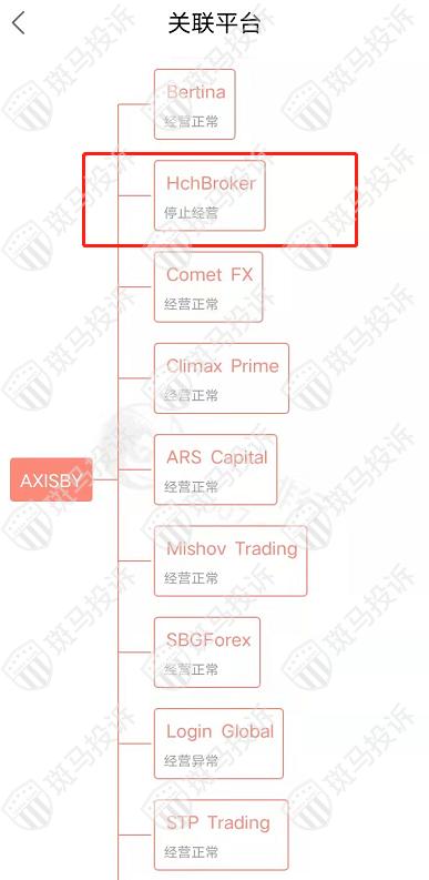 主白标关系显示,AXISBY平台和已经停止经营的HchBroker平台相关联,从他们的服务器地址,网站的模板来看,都可以看出来相似的地方。