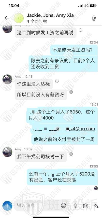 在工资发放时,HTFX负责人jackie、Amy的操作更是令人费解。先是声称销售团队无人达标,然后又以“7月份没有开发出代理的没有工资”为由,将员工排除在工资之外。最终,虽然在7月10日承认三人有资格领取工资,但实际发放却拖延至今,只有一个人收到,且采用支付宝方式,令人怀疑其透明度和公正性。