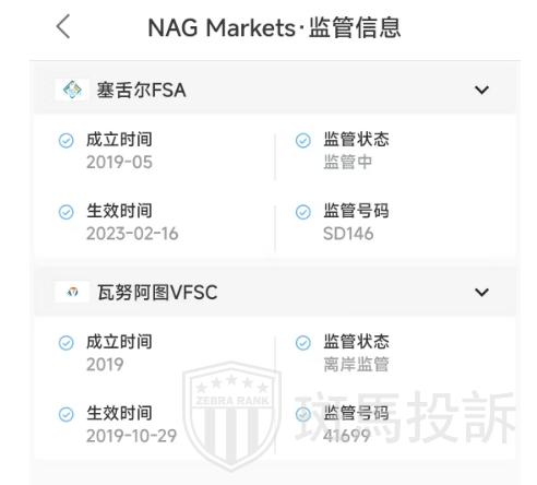 接下来,我们来看NAG Markets的监管情况。该公司声称受到塞舌尔FSA和瓦努阿图VFSC的监管,但据我们了解,其所持有的证券牌照并不能覆盖外汇交易,这无疑给投资者敲响了警钟。监管牌照的不匹配,可能意味着投资者的资产安全得不到充分保障,这是选择经纪商时必须警惕的一大风险。