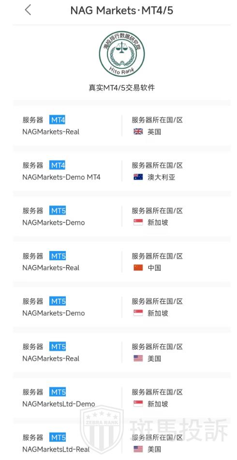 此外,NAG Markets的MT4/MT5服务器遍布全球五大地区,看似为投资者提供了便利,但服务器的分布也需与监管机构的地域相匹配,否则可能会引发监管上的漏洞。