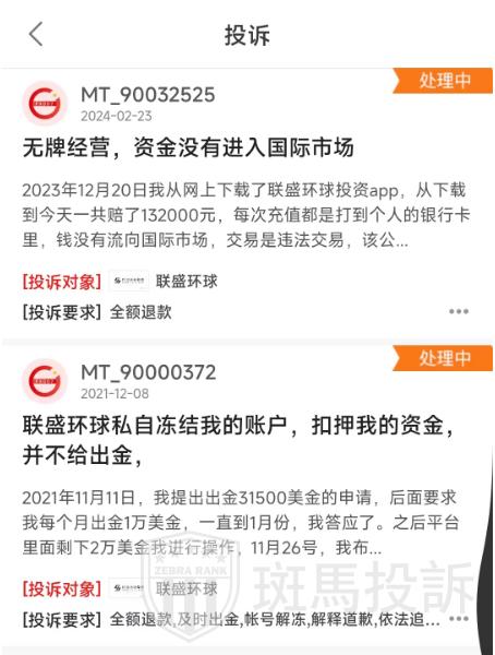 据不完全统计,联盛环球平台已有2条客诉纠纷。有客户反映,投资联盛环球无牌经营,资金并未进入国际市场;还有客户表示,联盛环球私自冻结账户,扣押资金。这些投诉暴露出联盛环球在资金安全管理方面的严重问题。
