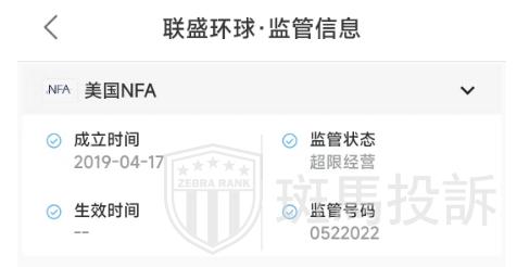 联盛环球仅取得美国NFA的金融服务牌照,而这个牌照并不监管外汇交易。这意味着,投资者在联盛环球进行交易时,资金安全无法得到有效保障。监管牌照是衡量外汇经纪商信誉的重要指标,一家没有正规监管的经纪商,其风险可想而知。