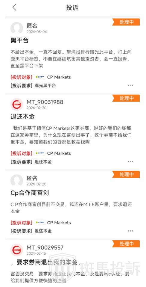 据调查,CP Markets平台累计接到22条客户投诉,涉及无法正常出金、资金被扣押等问题。我们因此为CP Markets标注了“出金延迟”的标签,以警示投资者。客户投诉是衡量经纪商信誉的重要指标,如此之多的投诉,无疑暴露了CP Markets在客户服务和管理上的严重缺陷。