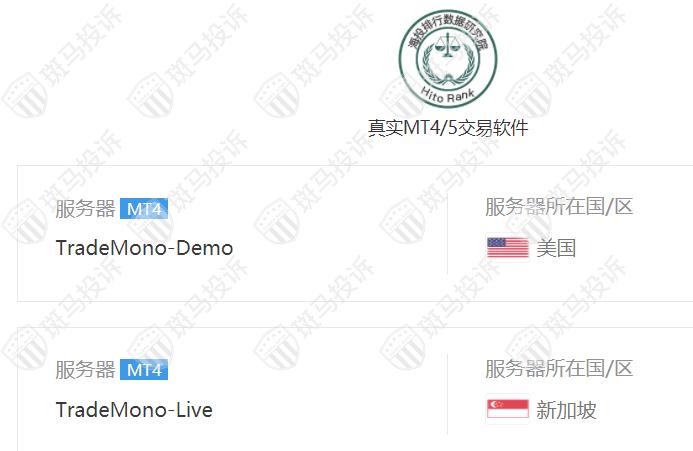 Trade Mono平台服务器有2台,分别在美国和新加坡。Trade Mono平台目前暂无斑马投诉。