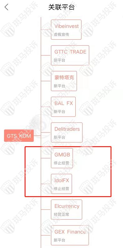 主白标关系显示,GTS KOM平台和已经停止经营的IdolFX等平台相关联,从他们的服务器地址,网站的模板来看,都可以看出来相似的地方。