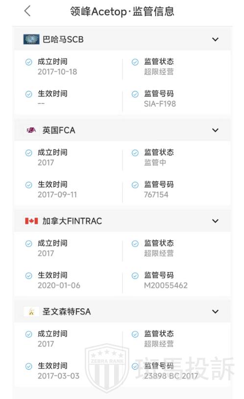 监管牌照是衡量经纪商合规性和安全性的关键指标。领峰受英国FCA监管,取得MM做市商牌照。FCA的监管标准严格,旨在确保金融机构的稳健性和透明度,防止市场操纵和欺诈行为,保护投资者的利益。然而,领峰还受巴哈马SCB监管、加拿大FINTRAC监管和圣文森特FSA监管,这三个监管机构的监管力度相对较低,可能影响投资者的资金安全和权益保护。