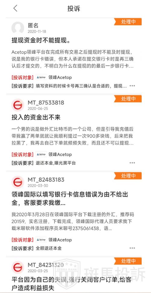 客户投诉是评估经纪商服务质量的重要指标。领峰目前有14条客户投诉,其中投资者投诉平台提现的资金有问题,导致银行卡和资金被冻结;投入资金无法提现等资金安全问题。虽然投诉数量并不高,但投资者在选择领峰时应充分考虑这些投诉,以确保自己的交易权益得到充分保护。