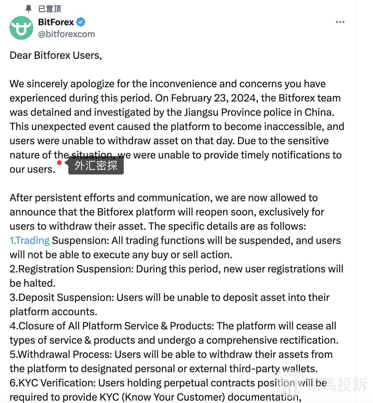在漫长的等待之后,BitForex终于宣布将重新开放,以便用户提取资产。根据官方声明,BitForex的复活计划包括以下几方面: