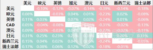 热图显示了主要货币对的波动百分比变化。基准货币从左列中选取,报价货币从顶行中选取。例如,如果投资者从左列选择欧元,然后沿水平线移动到日元,方框中显示的百分比变化即为欧元/日元波动。