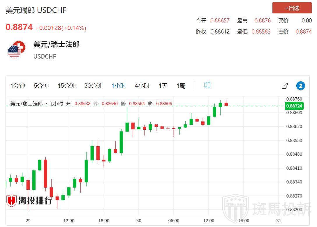 周二欧洲时段早盘,美元/瑞郎在0.8870附近保持积极走势。