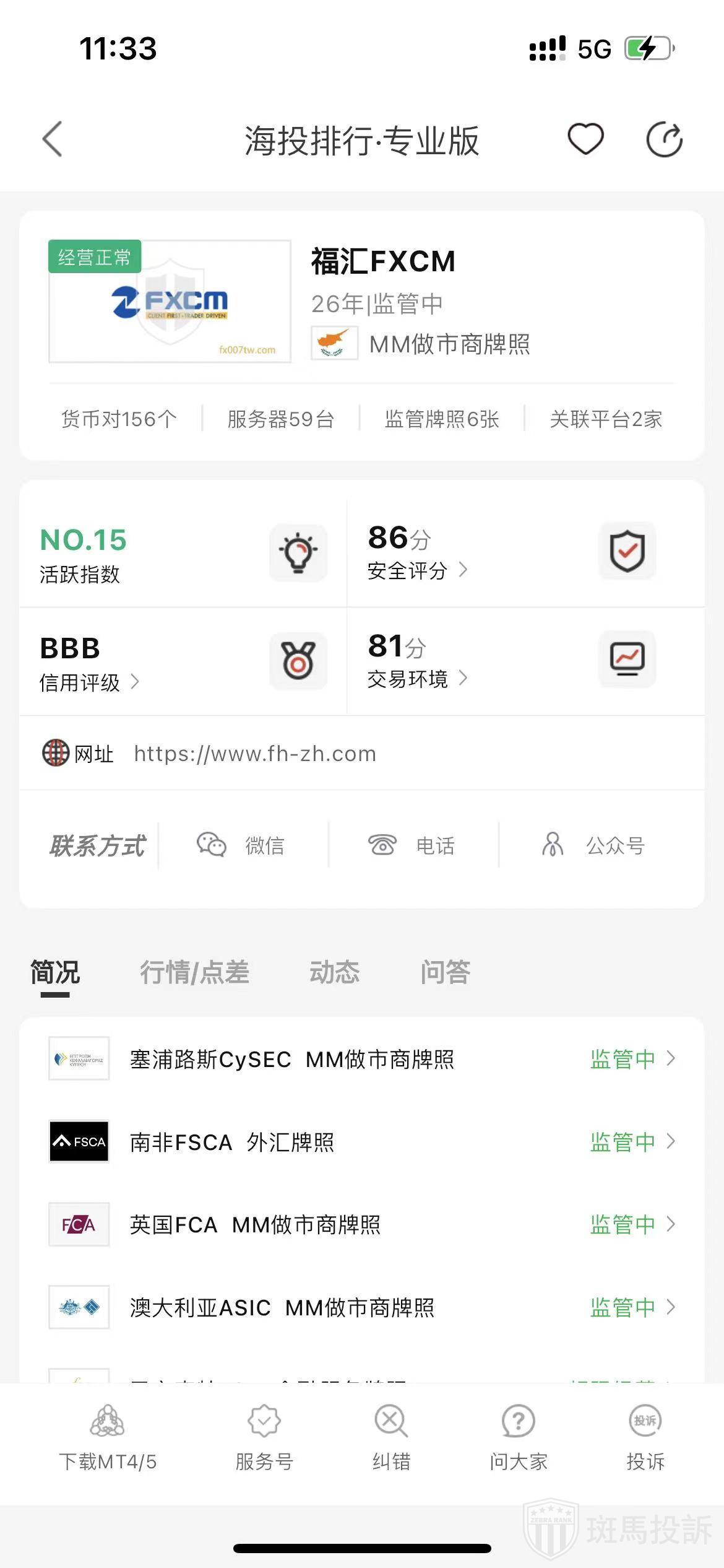 根据海投排行查询显示,这家平台叫福汇FXCM,成立于1999年,全球排名11名,安全评分90分,平台宣传称拥有英国FCA外汇牌照,澳大利亚ASIC,南非FSCA外汇牌照和塞浦路斯CySEC市场牌照等多个国家的监管牌照风险扫描预警有203条.
