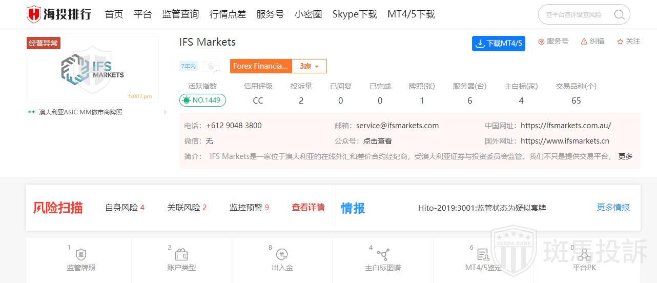 请注意,尽管IFS Markets是一个受监管的平台,但交易外汇和差价合约等金融产品仍然存在风险。投资者应该对平台进行充分的调查,并在开始交易之前考虑自己的风险承受能力。