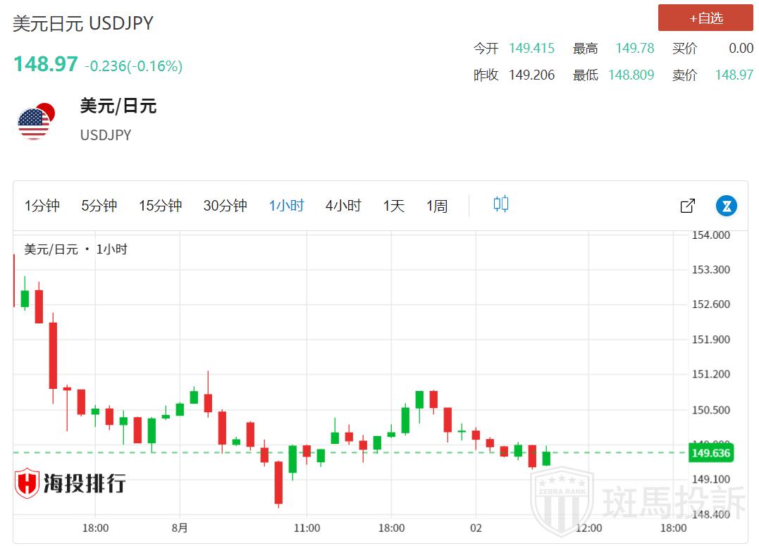 美国非农前,美元/日元连续第四个交易日下跌,突破150.00