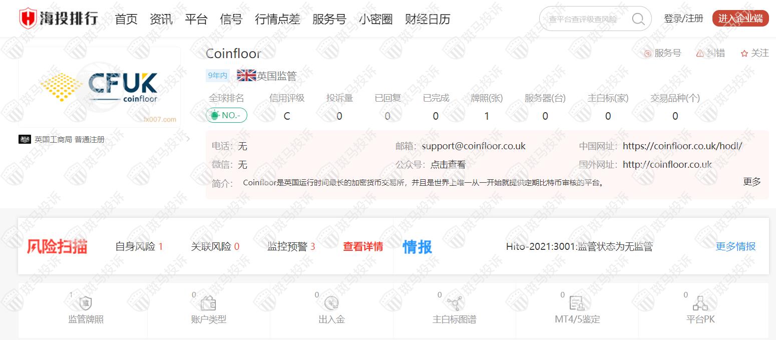 二、据海投排行上的Coinfloor平台信息: