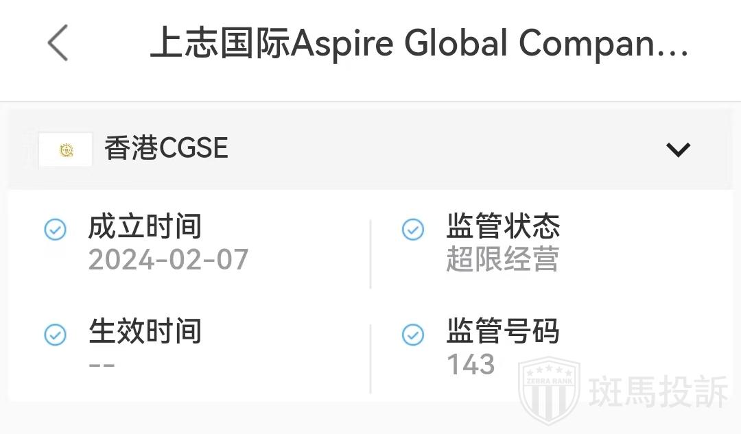 上志国际平台受香港CGSE监管,取得金融服务牌照,监管号码:143,属于超限经营范畴。