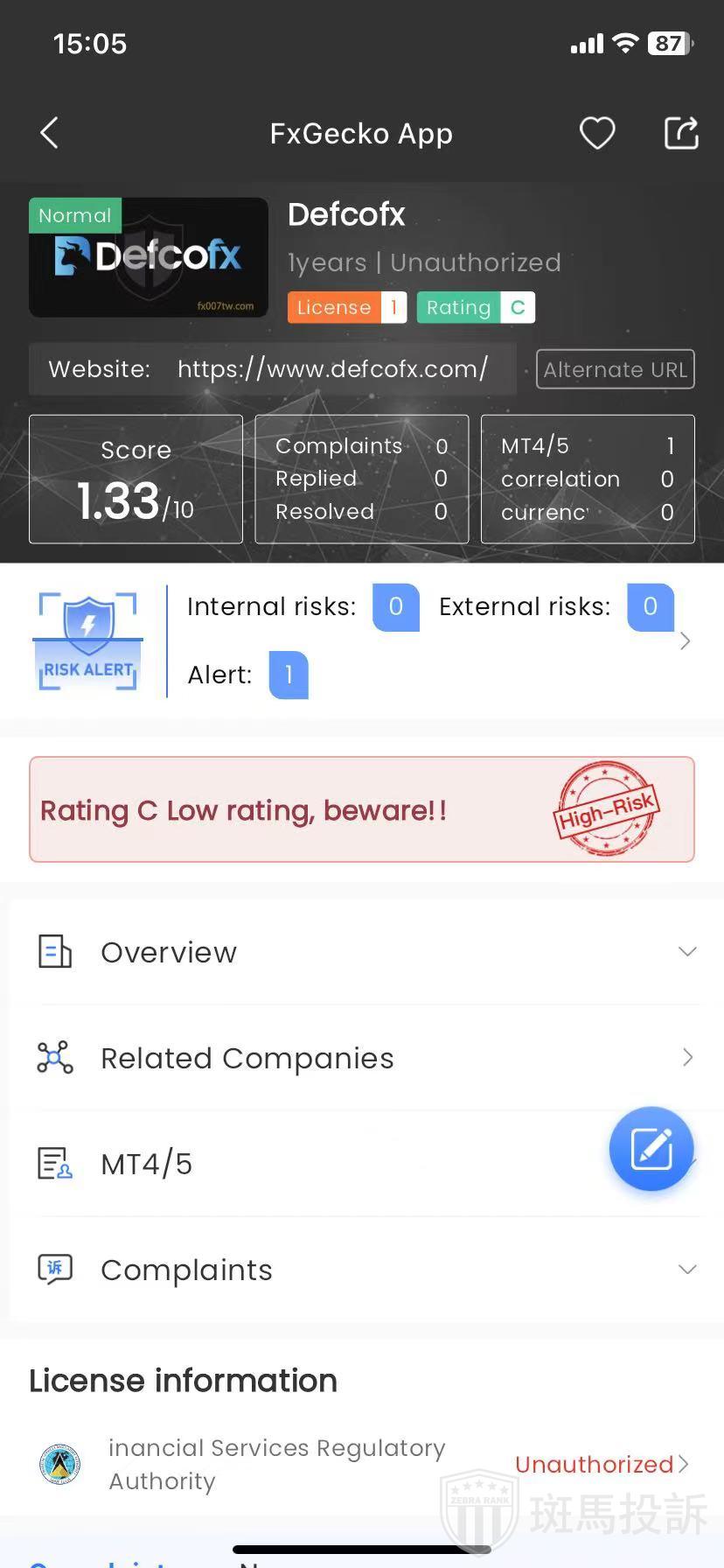 Defcofx,FxGecko评分1.33分,信用评级较低,建议投资者远离!